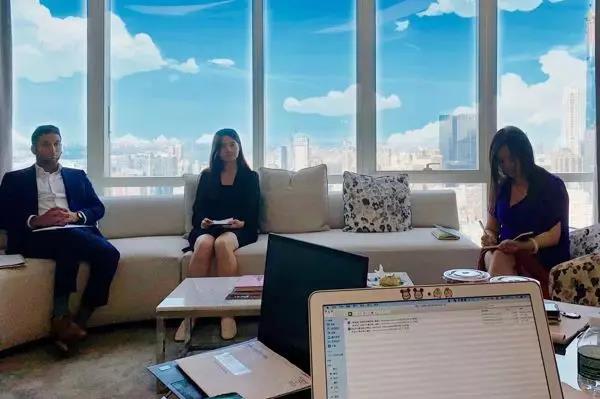 纽约办公室在紧凑的会议空隙享用晚餐。