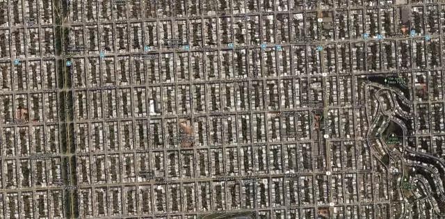 芝加哥城市东西、南北约25英里(约40公里)范围内被像围棋盘一样以大约1/8英里为单位划出了数万个小方格,期间点缀绿树、公园、广场,为人营造舒适有序的生活空间。