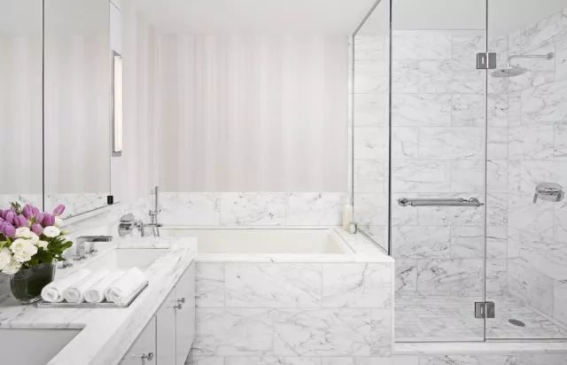 MIMA浴室配备了Jamie Drake 独家定制的浴室各式配件、Kohler(科勒) Tea-for-Two 浴缸、日本 TOTO 高品质坐便器等。