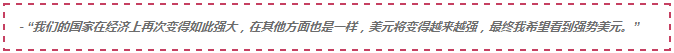 美国时间1月25日,出席达沃斯论坛期间接受CNBC专访时,特朗普表示:“美元会越来越走强,最终我希望看到强势美元。我们的国家会在经济方面再次强大,其他方面也是。”