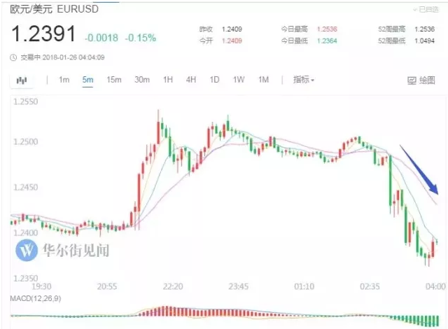 与此同时,特朗普表态后,美元指数应声反弹,抹平跌幅转涨。欧元兑美元一度跌破1.24,刷新日低。