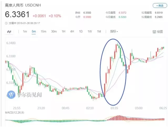随着美元反弹,离岸人民币兑美元一度失守6.34关口,最终勉强回到6.32上方。