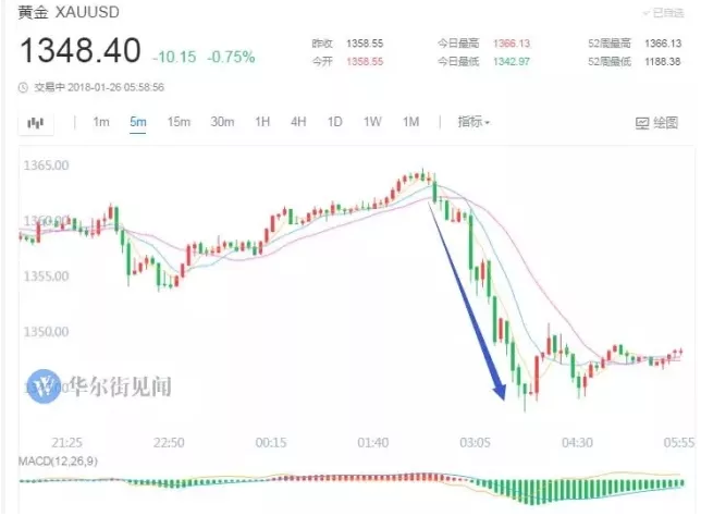 黄金方面,特朗普讲话后,金价回落,一度跌破1343美元,较日内高位跌去10美元以上,跌幅达到1.7%。