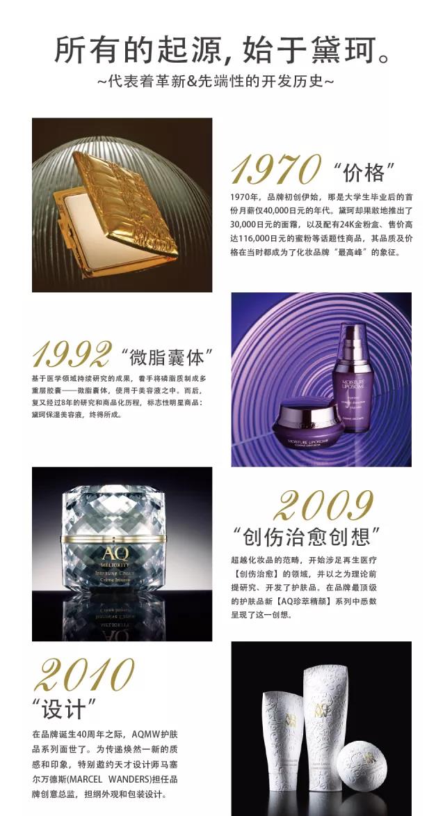该集团旗下最顶级的品牌Decorté诞生于1970年,以国际化、尊贵、知性、优雅为定位,不沦是品质还是价位都“贵气”十足。