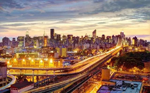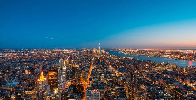 夜晚来临,曼哈顿的摩天大楼渐次亮起灯光,壮观的曼哈顿夜景,场景经典呈在人们面前。正对面帝国大厦的屋顶,被红色灯光勾画出顶端圆塔轮廓,在一片灯火辉煌之中尤其突出,令人心醉不已。在灯火辉煌中,又看到天空闪烁的星星,不禁感慨曼哈顿夜景之壮观。太阳即将落下那一时刻,曼哈顿景色最为动人。