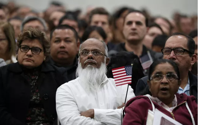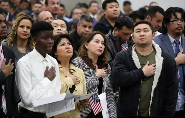 美国联邦公民及移民服务局(USCIS)当地时间2月15日在洛杉矶会展中心举办入籍仪式,来自140个国家6500名移民宣誓入籍,迎接新身份和新生活,其中不少华人都希望入籍后,能有更多的出行自由和便利。