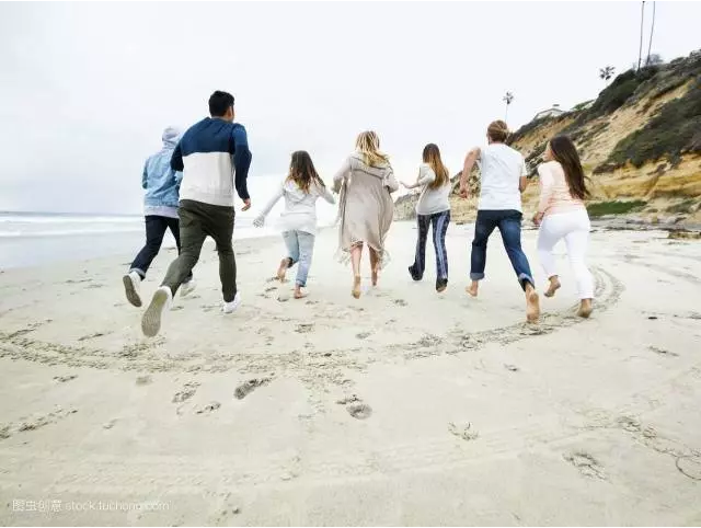 阳光与海滩,及肤色各异但欢乐融洽的人们